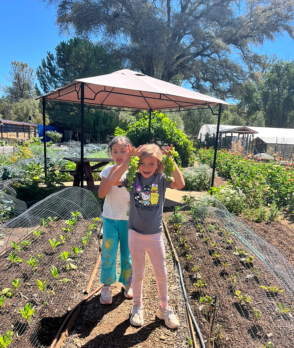 From composting and soil science to trellis-building, planting, and harvesting, students at every grade level actively engage in the full cycle of food production. Thanks to the CA Grown Fresh grant, our garden now includes a greenhouse, chicken coop, outdoor learning center, and secure fencing—making it a year-round hub of learning and nourishment. Our harvests are even making their way into the school lunch program, where students enjoy the literal fruits (and veggies!) of their labor.
