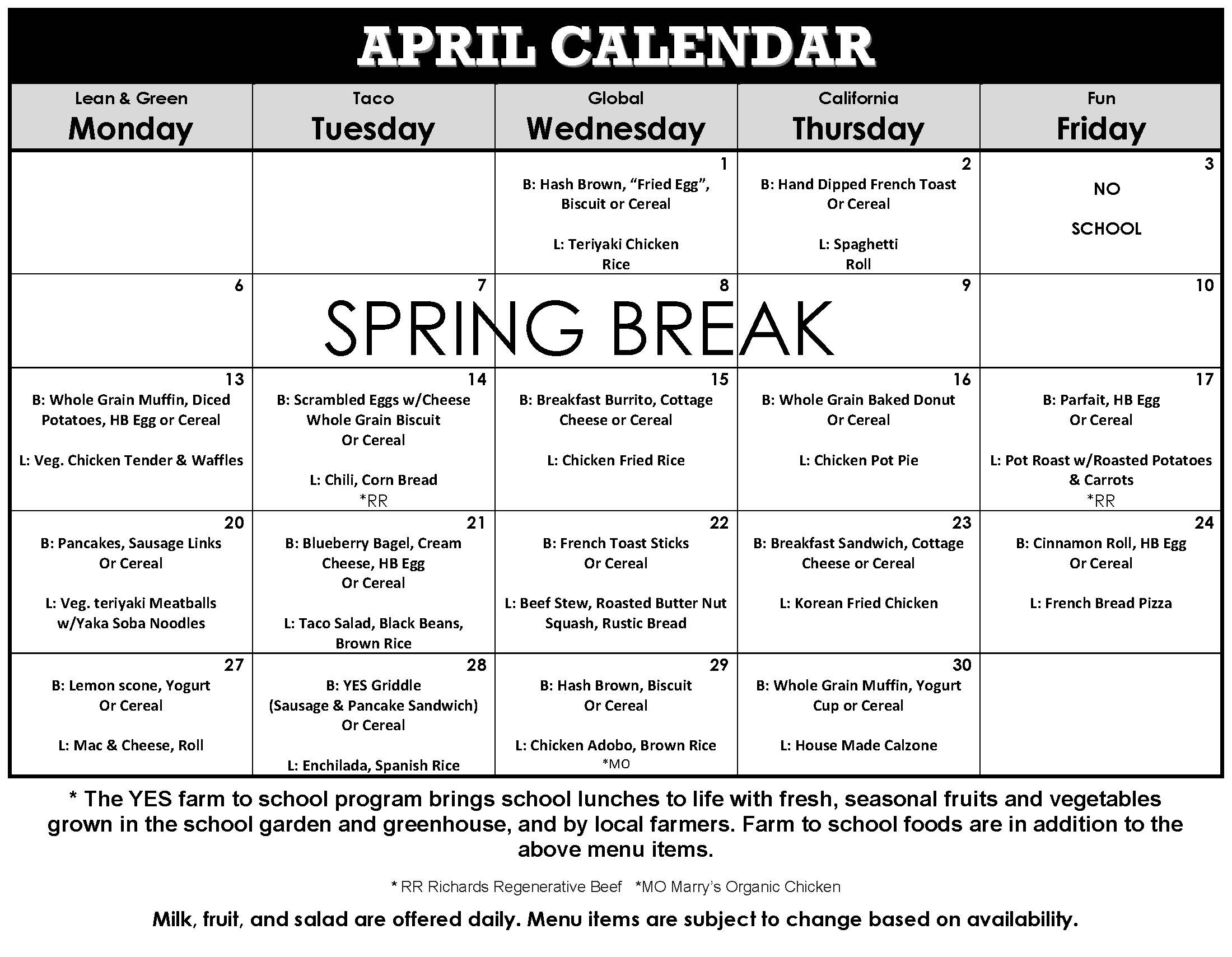 April Menu